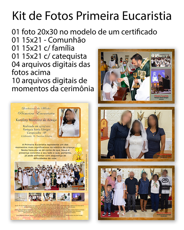 Celebre e eternize esse momento com o nosso Kit Fotográfico exclusivo da Primeira Eucaristia, produzido com carinho e qualidade profissional.